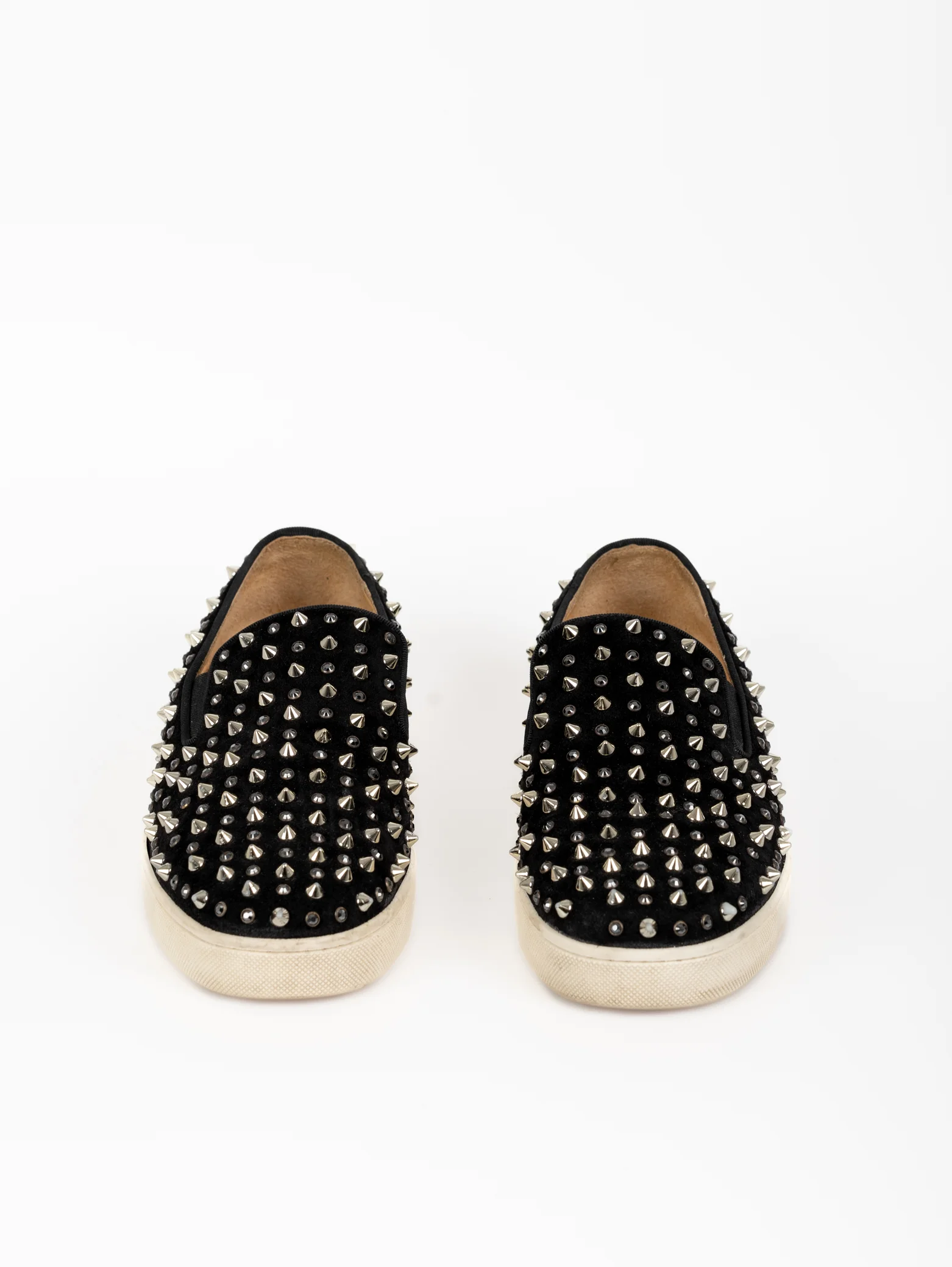 Christian Louboutin Slip on pretos c/ picos e brilhantes