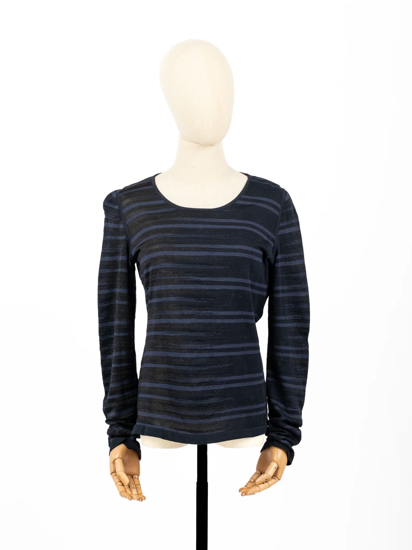 Blusa Chanel preta c/riscas azul c/brilhantes de manga comprida