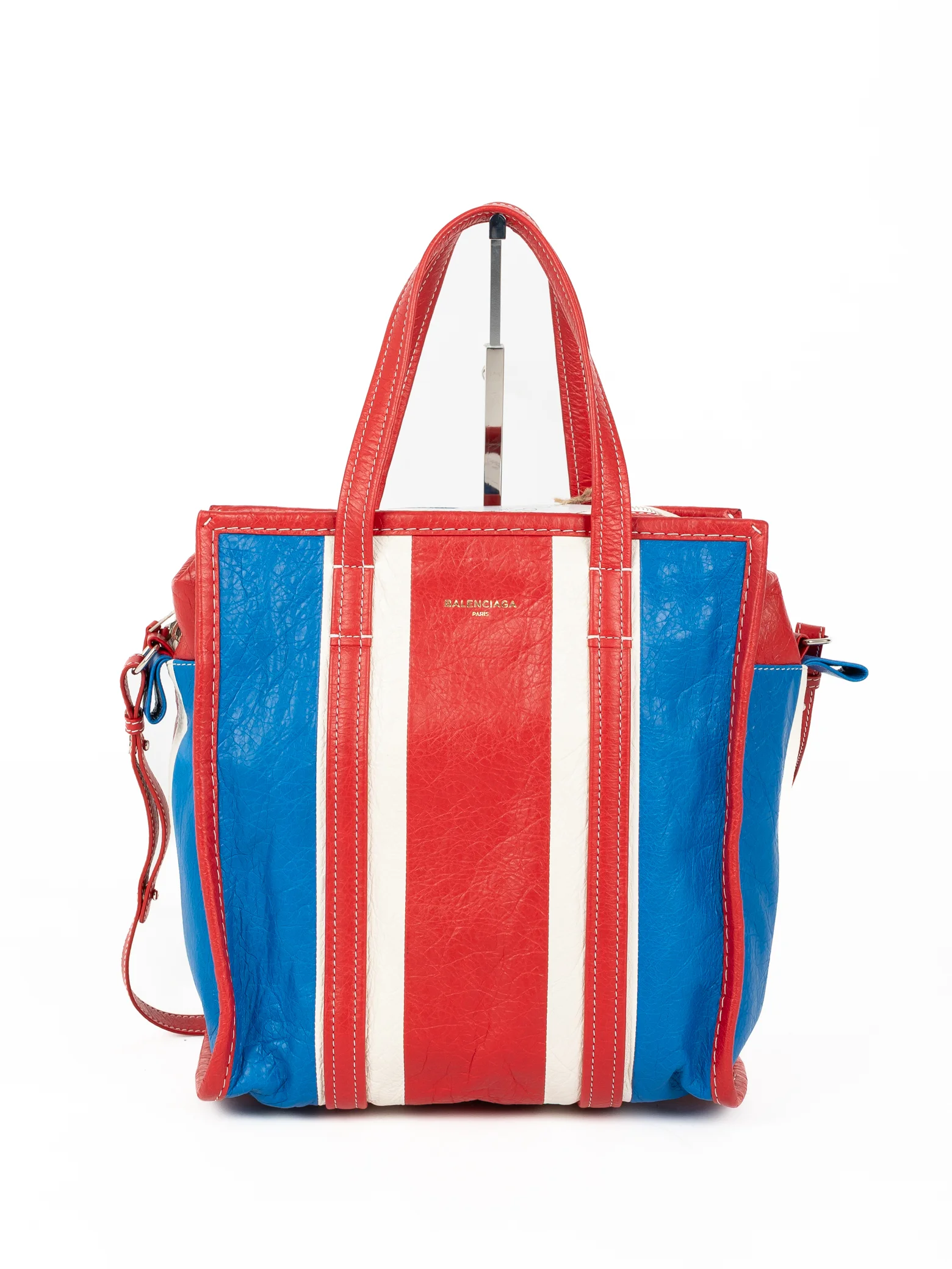 Balenciaga Striped Bazar S Shopper 443096-4360-Z-568024 - Tote Bag Tricolor branca, azul e vermelha