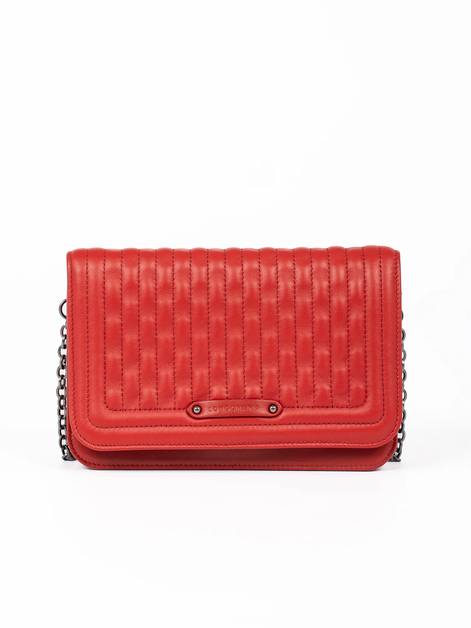 Mala Longchamp pequena vermelha com hardware prateado