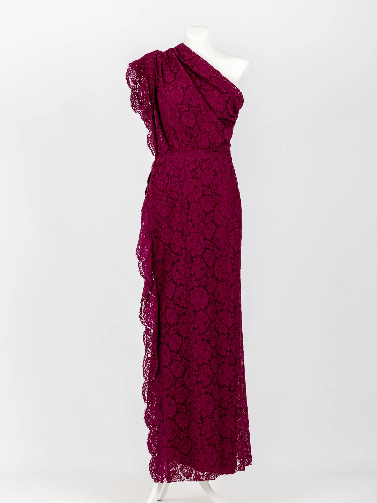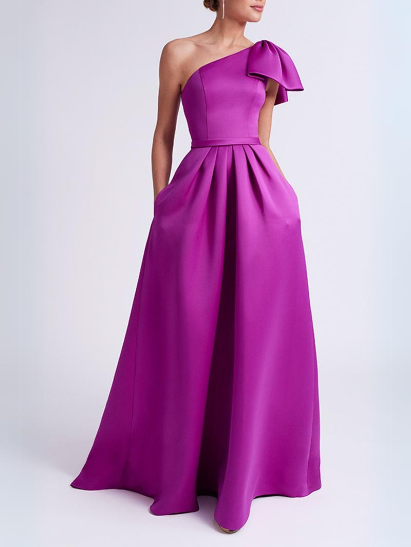Vestido Rosa Clará de cerimónia roxo apenas c/ uma manga em laço