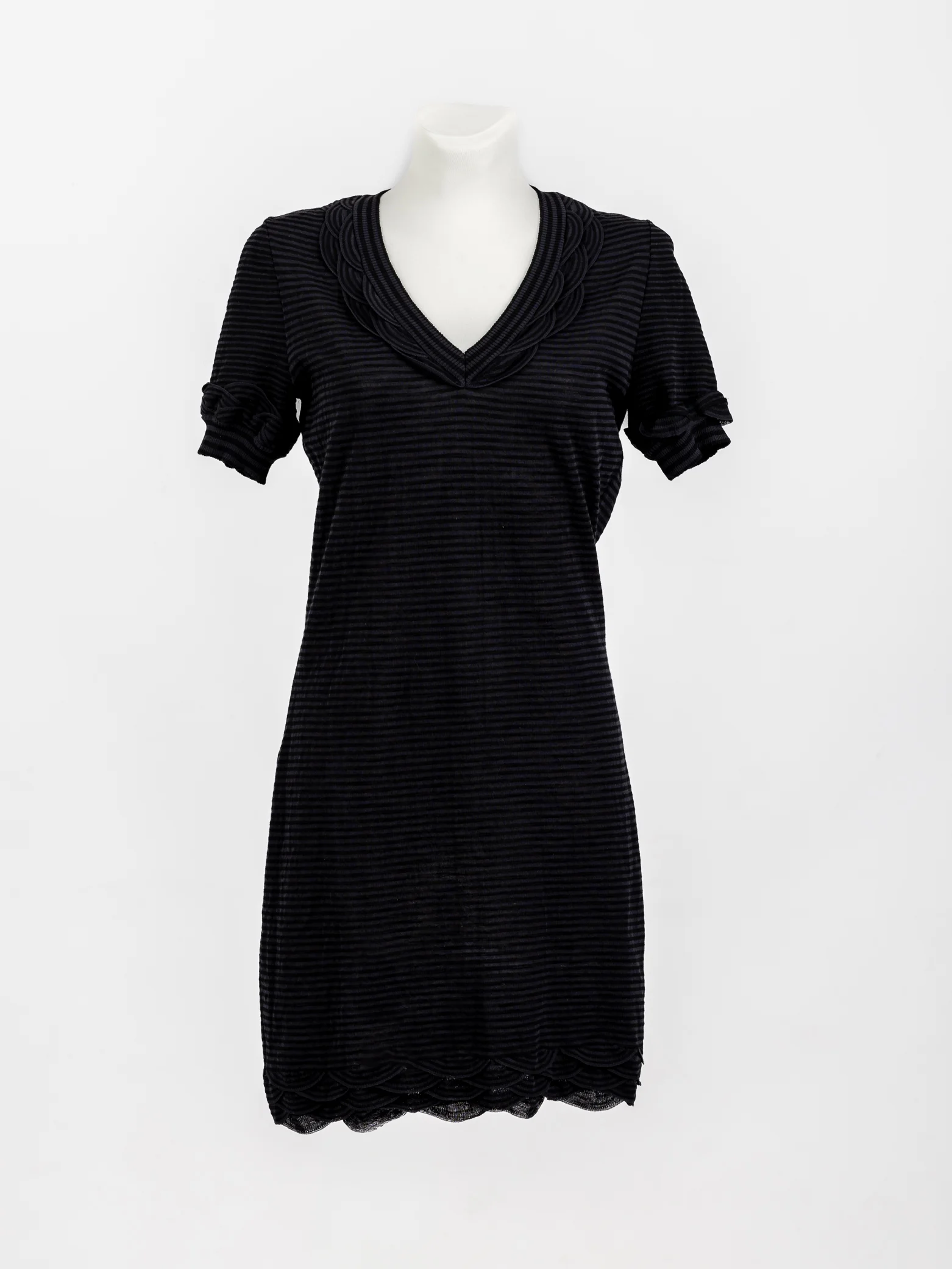 Chanel Vestido malha às riscas cinza e preto m/curta