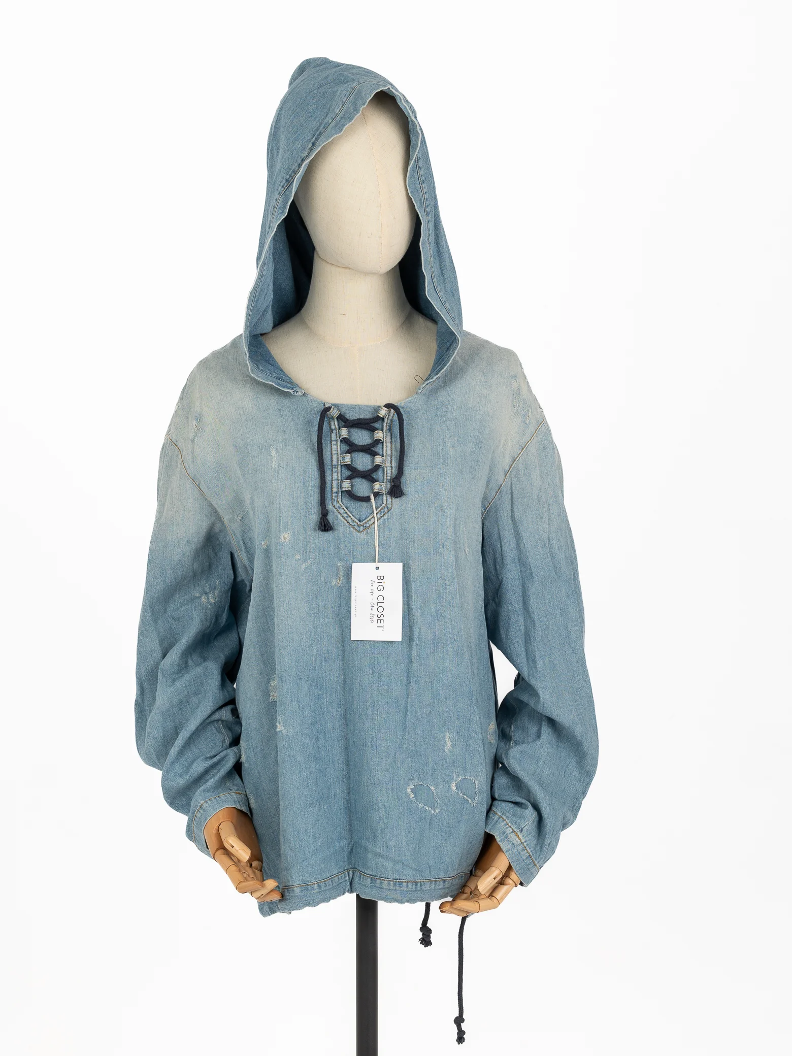 Saint Laurent 2018 Distress Denim Hoodie - Sweatshirt em ganga