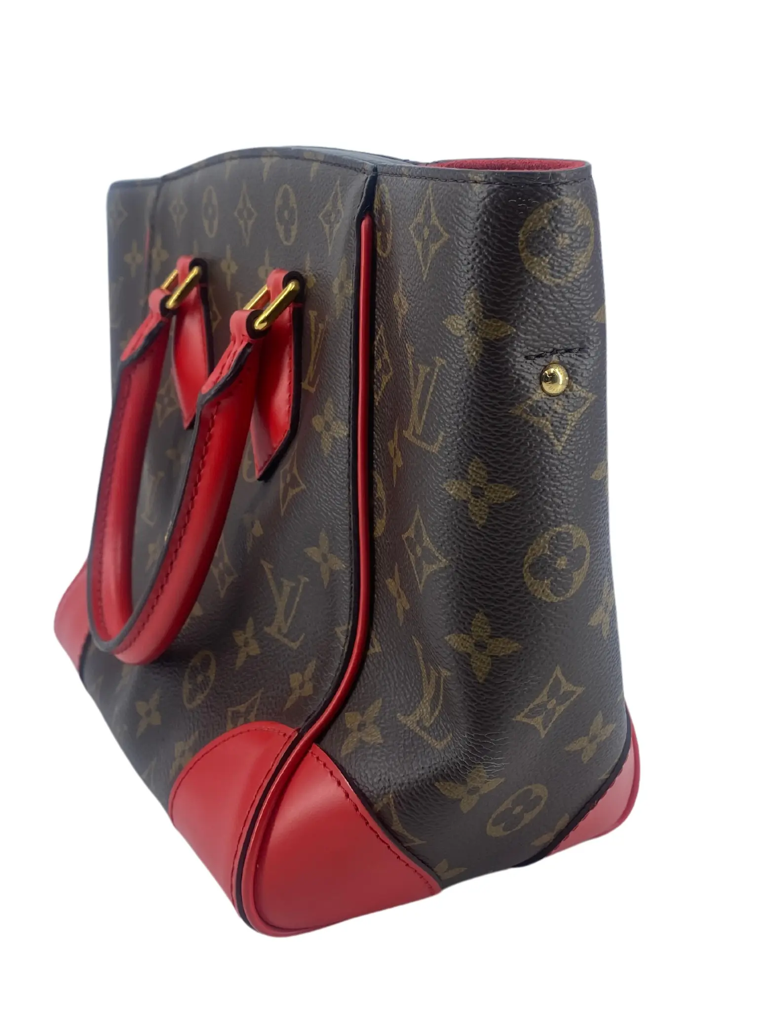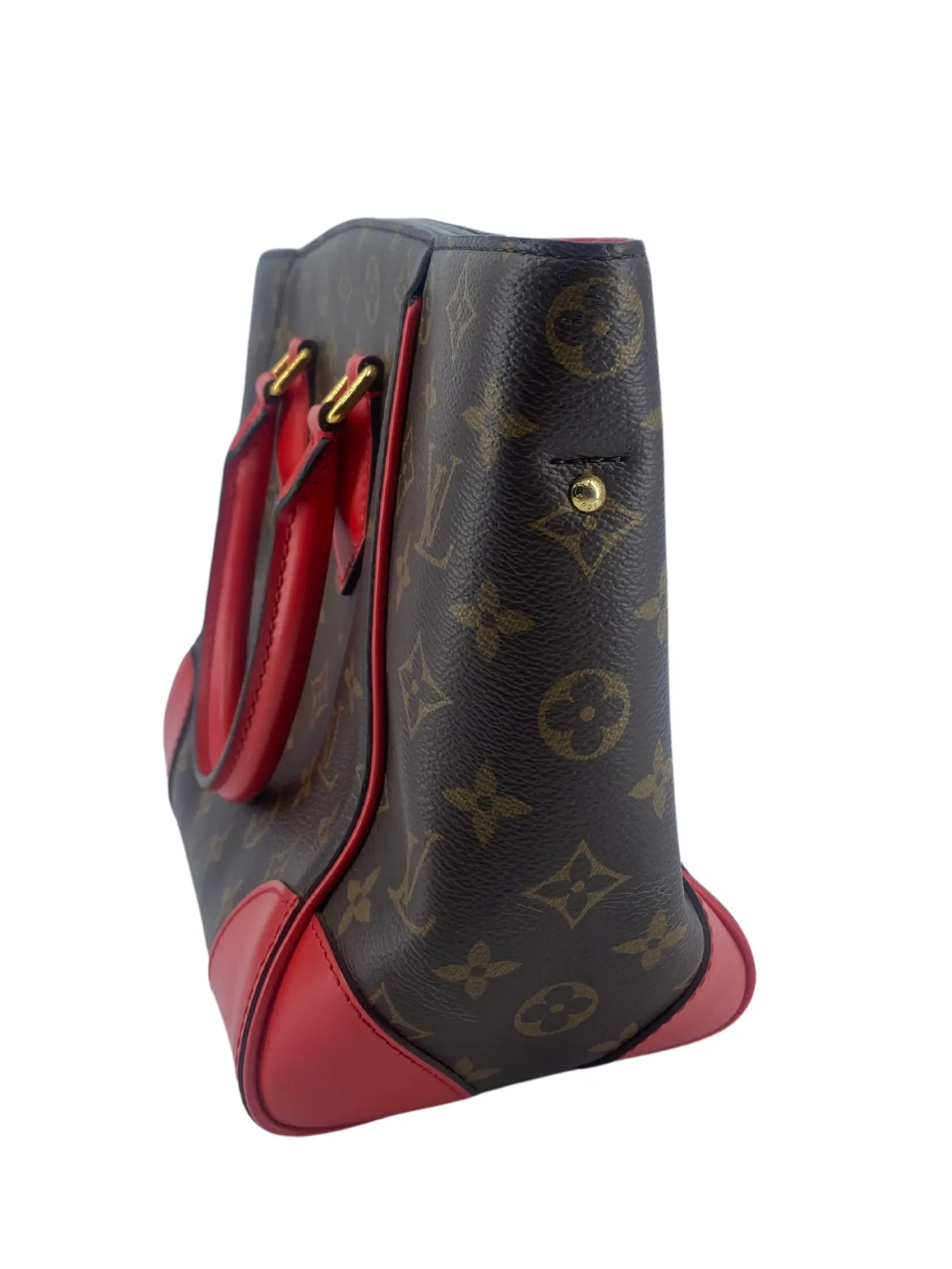 Cor / hardware: Castanho e Vermelho / Dourado