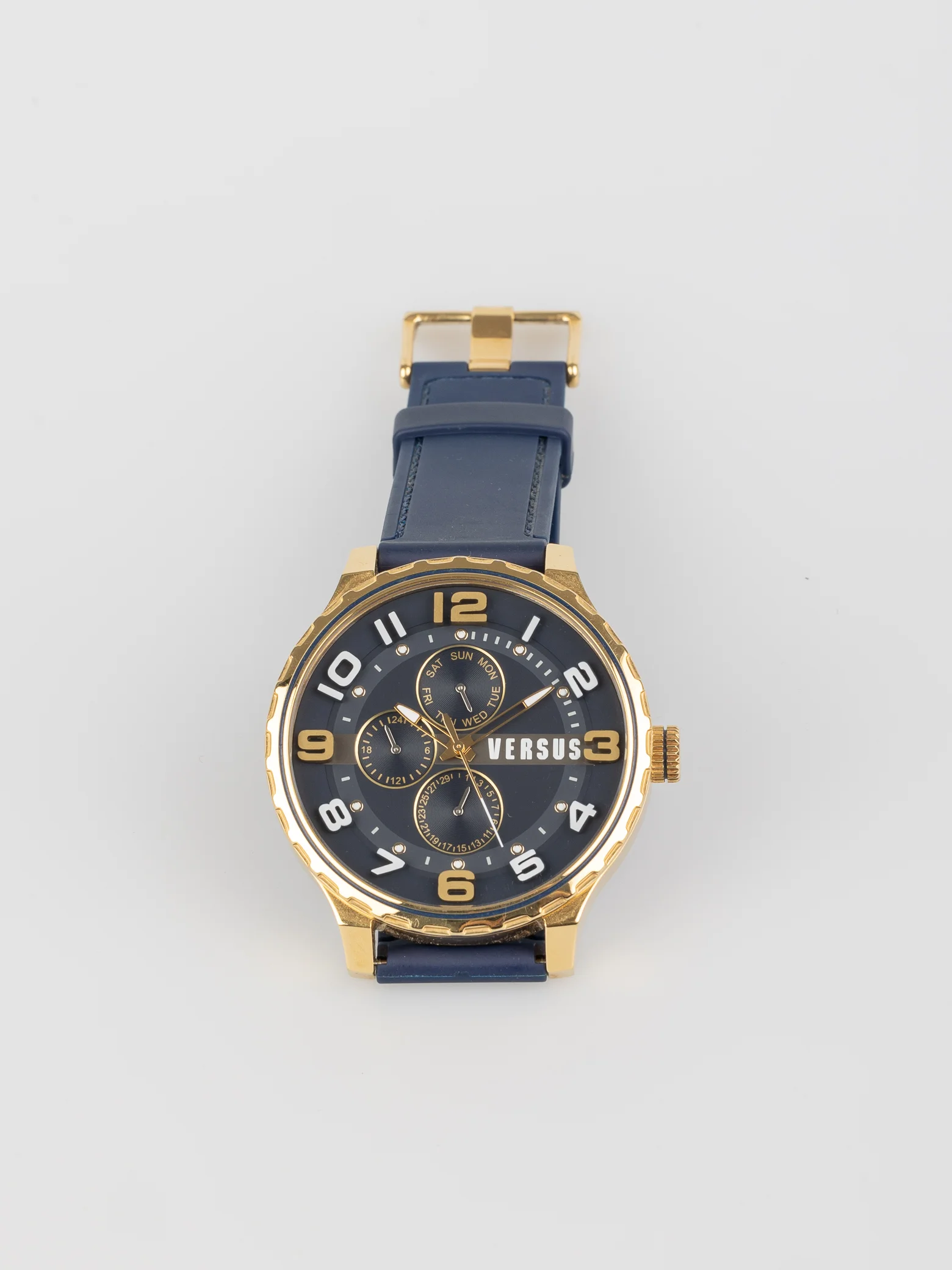 Cor / hardware: Azul/Dourado